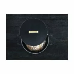 Gryden fra Timm Vladimir er fremstillet i støbejern, som både giver god kvalitet og et rustikt look, der matcher resten af hans serie. Støbejern giver en god varmefordeling så suppen varmes fra alle sider og ikke kun fra bunden og op. Grydelåget har små pigge på indersiden af låget, så konsens kan løbe ned i gryden igen, og gør dit kød super mørt.