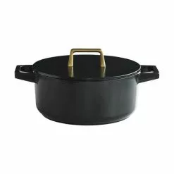 Gryden fra Timm Vladimir er fremstillet i støbejern, som både giver god kvalitet og et rustikt look, der matcher resten af hans serie. Støbejern giver en god varmefordeling så suppen varmes fra alle sider og ikke kun fra bunden og op. Grydelåget har små pigge på indersiden af låget, så konsens kan løbe ned i gryden igen, og gør dit kød super mørt.