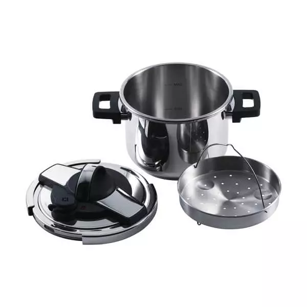 Med denne smarte trykkoger fra Timm Vladimir Kitchen kan du i den grad forkorte din kogetid. Så undgår du at skulle stå i køkkenet i flere timer for at lave noget ekstra lækkert til gæsterne eller familien. Den har et rumfang på hele 6 liter og en maks. kapacitet på 4 liter, så der er masser af plads til mad til gæster eller hele familien. Med trykkogeren medfølger en praktisk dampsi, så du også kan dampe dine grøntsager i trykkogeren. Desuden har den et funktionelt et-håndslåg, så den er nem at betjene, hvis du ikke lige har begge hænder fri.