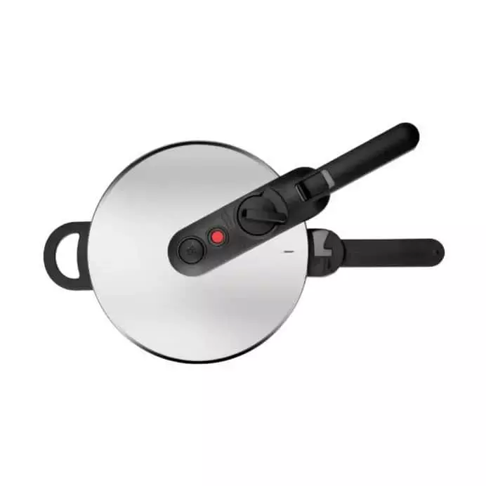 Trykket bliver opbygget i trykkogeren takket være det tætsluttende låg. Dette gør, at du kan tilberede mad ved høje temperaturer og derved tilberede maden utrolig hurtigt. Denne EcoQuick trykkoger kan indeholde 3 liter.