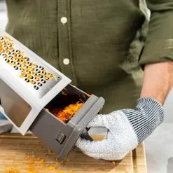 Det er ikke spor sjovt at skære sig i fingerne, når man prøver at være lidt kreativ i køkkenet med de smarte rivejern. Med Z-Cut handsken fra Zwilling kan du rive dig løs, uden at få skåret fingerene af i processen. God fornøjelse.